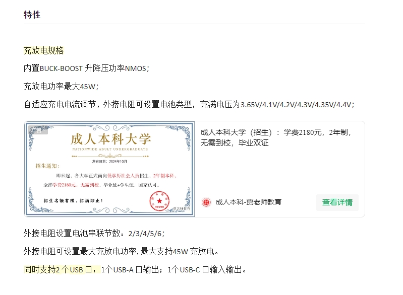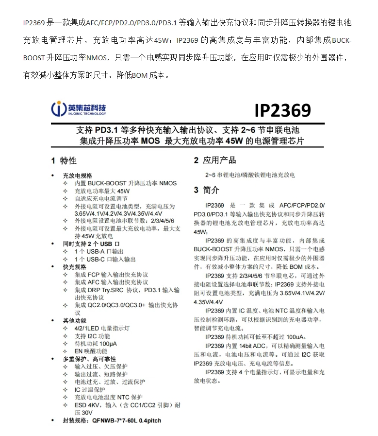 英集芯IP2369|45W升降压充放电一体!支持2-6串锂电/铁锂,PD3.1+双口快充 协议全兼容