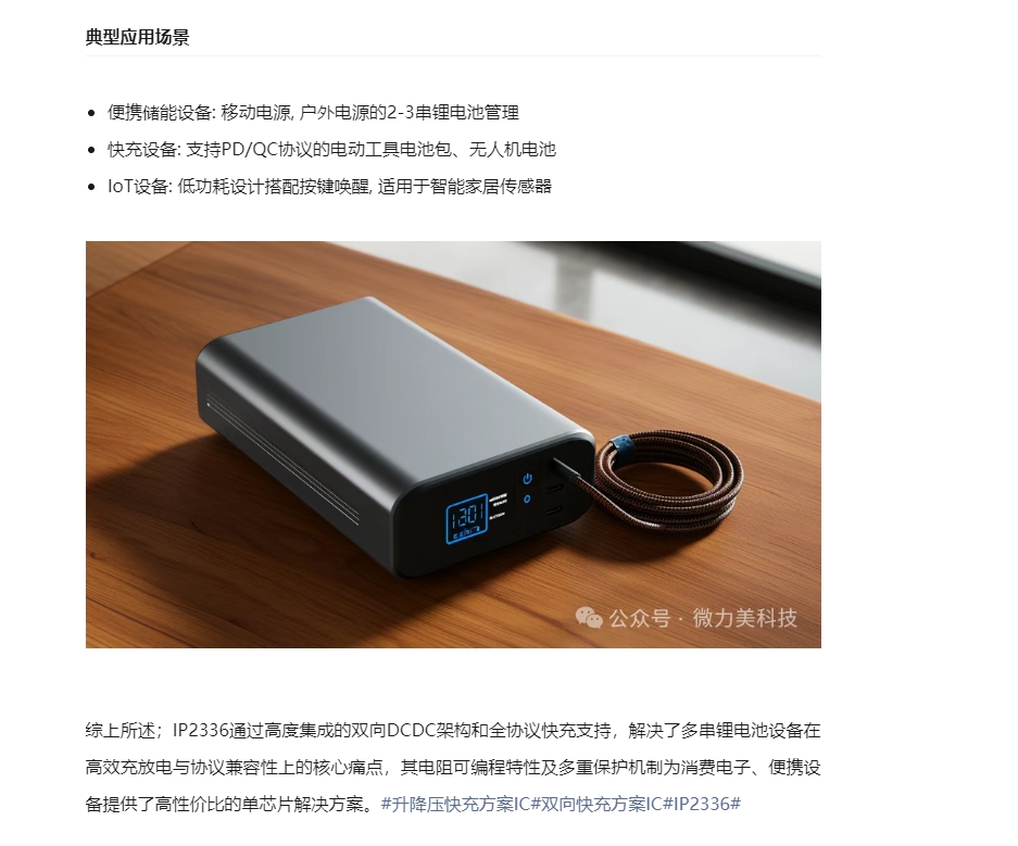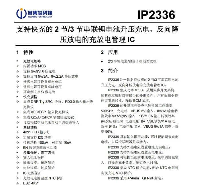 IP2336:单芯片终结2-3串锂电池快充难题!升降压一体+全协议支持 双向快充/10μA待机/电阻可编程