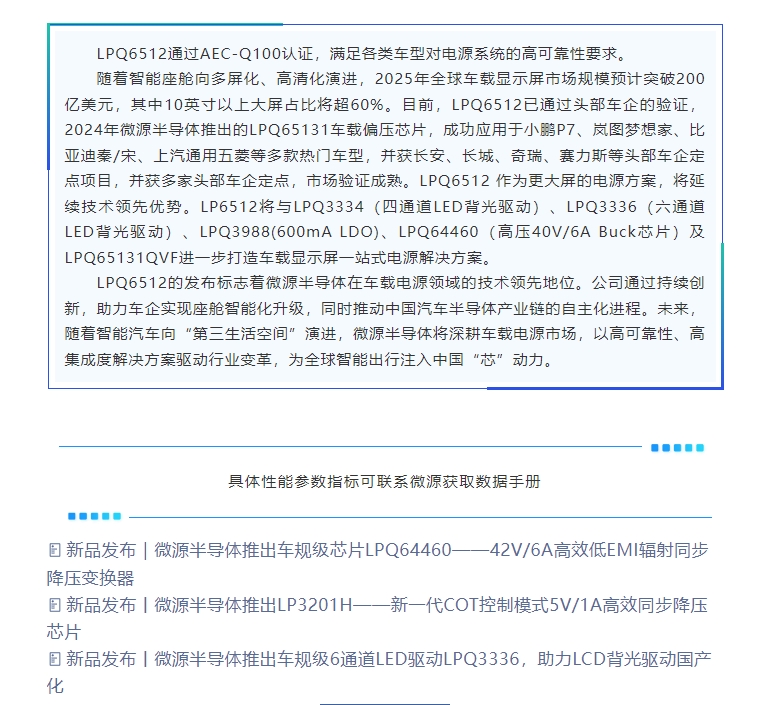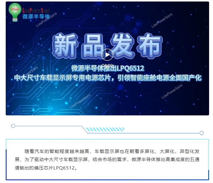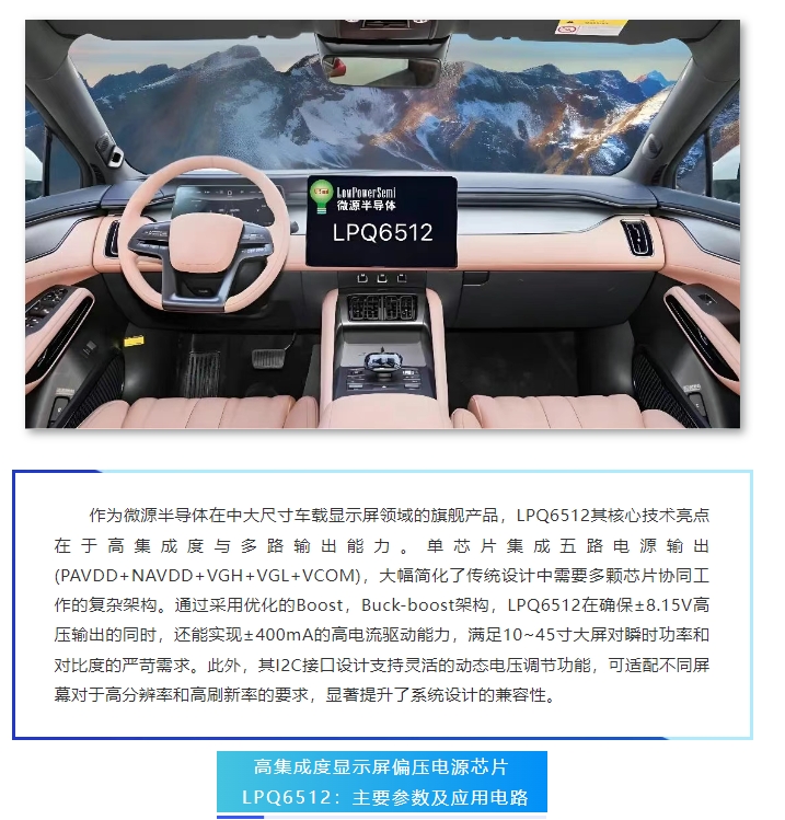 新品发布|微源半导体推出LPQ6512——中大尺寸车载显示屏专用电源芯片,引领智能座舱电源全面国产化